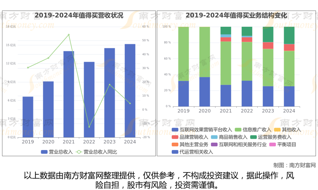 值得买于2019年7月15日在深圳证券交易所上市,公司主营业务为主营消费内容板块、营销服务板块以及消费数据板块。