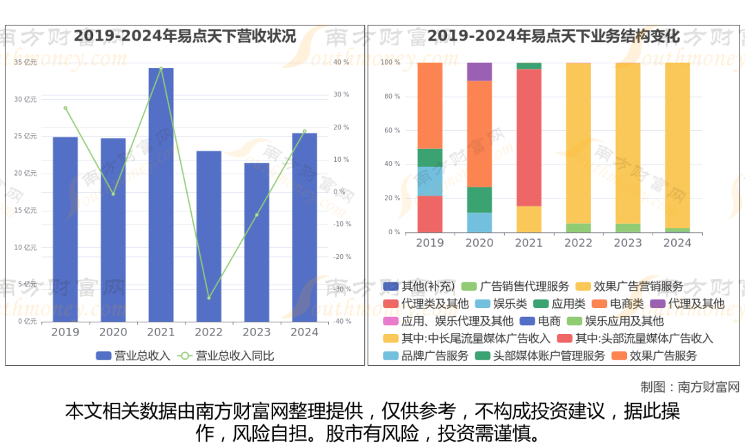(如上图)易点天下2024年全年营业收入为25.47亿,同比增长18.83%,近五年复合年增长率0.68%。