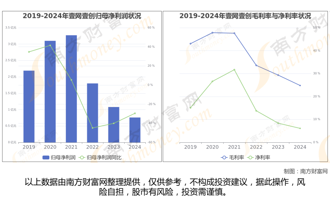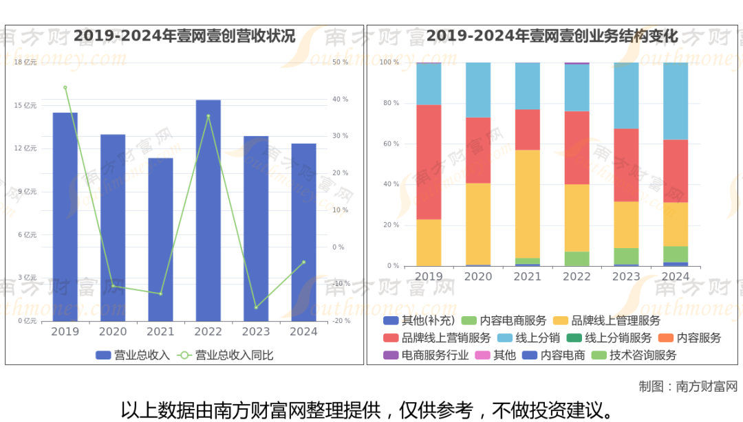 据年报数据显示(如上图),壹网壹创过去一年实现营业收入12.36亿,同比增长-4.02%,近5年复合年增长率-1.23%。