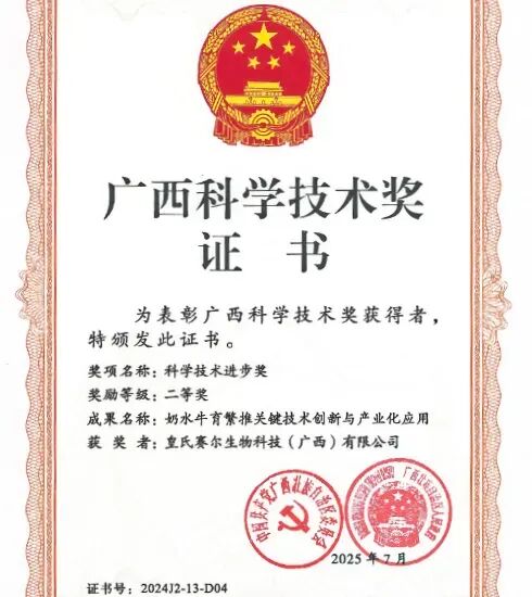 同一时期,皇氏集团申报的“水牛奶特色乳品生态链数字中台助推营销智能化升级”项目入选工信部2024“数字三品”应用场景典型案例,集团技术中心荣获2024年自治区企业技术中心评价“优秀”等级。2025年7月,皇氏赛尔公司参与的“奶水牛育繁推关键技术创新与产业化应用”项目荣获广西科技进步奖二等奖;11月,企业凭借突出的科技创新能力荣获“广西民营企业科技创新10强”。一系列权威奖项的加持,不仅是对皇氏创新能力的高度肯定,更印证了其以技术驱动产业高质量发展的坚定决心。