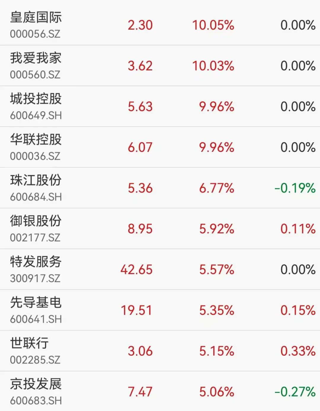 截至当天收盘,A股市场方面,我爱我家、华联控股、城投控股涨停,珠江股份、特发服务、京投发展等上涨超过5%。华夏幸福、绿地控股、陆家嘴、金地集团跟涨。
