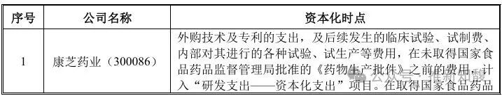 2、公司资本化时点与其他同行业可公司对比情况