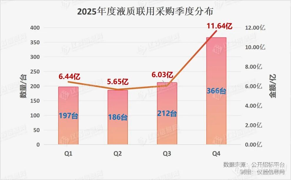 据仪器信息网统计,2025全年中标总数量达961台/套,中标总金额29.76亿元,均较上一年略有下降。表面来看,这是市场规模的一次阶段性收缩。一方面,财政支出结构调整与采购节奏变化对大型仪器采购形成短期影响;另一方面,售后维修市场持续扩大、设备维保服务体系完善以及二手设备租赁模式兴起,使部分用户延长设备使用周期,新购需求阶段性减弱。液质联用市场也由此前的扩张期逐步进入存量竞争阶段。