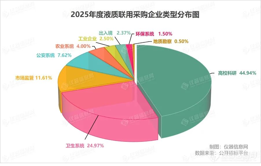 从采购单位结构来看,高校科研机构与卫生系统仍是市场需求的两大支柱。2025年,郑州大学全年完成13项液质设备采购,广州中医药大学的重大设备更新项目亦包含近10项质谱采购,且几乎均以进口品牌为主,显示出高端科研场景对进口设备仍有较强依赖。与此同时,卫生系统(含疾控、医院等)及农业、环境、监管系统释放的应用需求,正推动液质市场持续向应用导向型发展。