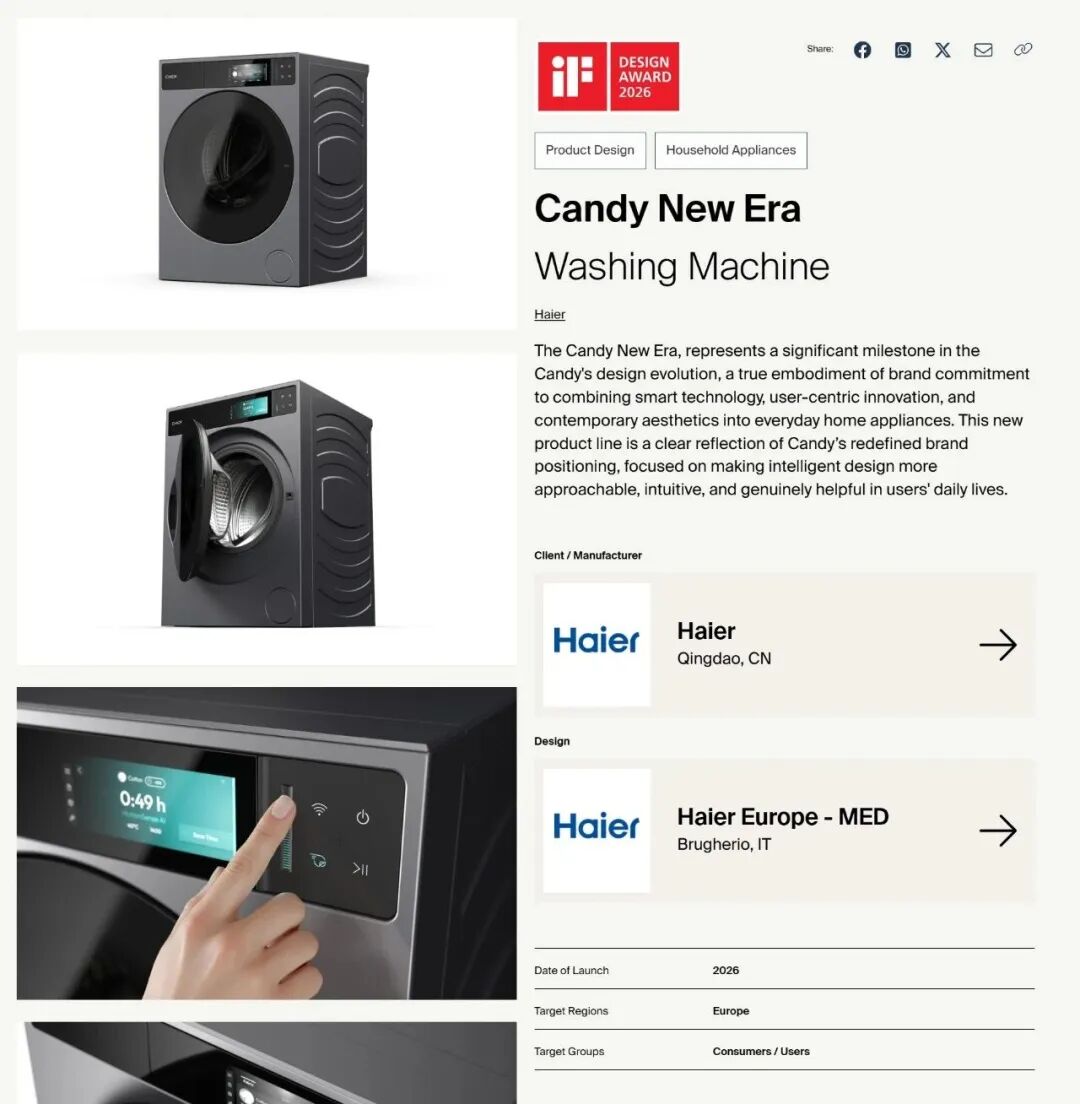 海尔智家旗下CANDY洗衣机荣获2026年iF设计奖