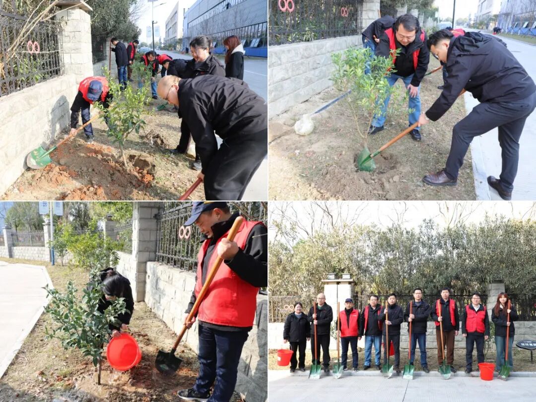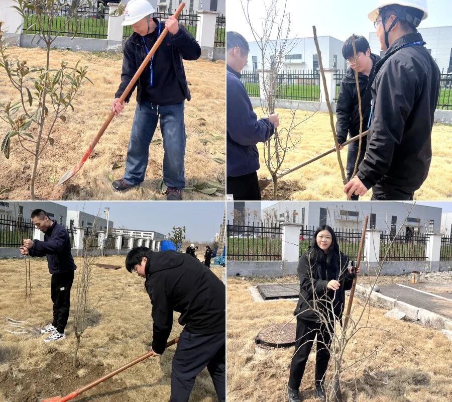 活动现场,参与人员挥锹铲土、扶苗培土、提水浇灌,每一道工序都认真细致、一丝不苟,现场一派热火朝天的劳作景象。大家默契配合,将一棵棵充满生机的果苗稳稳栽种在厂区空地上,欢声笑语间,新栽的果苗迎风挺立,为春日的厂区增添了一抹抹灵动的绿意。