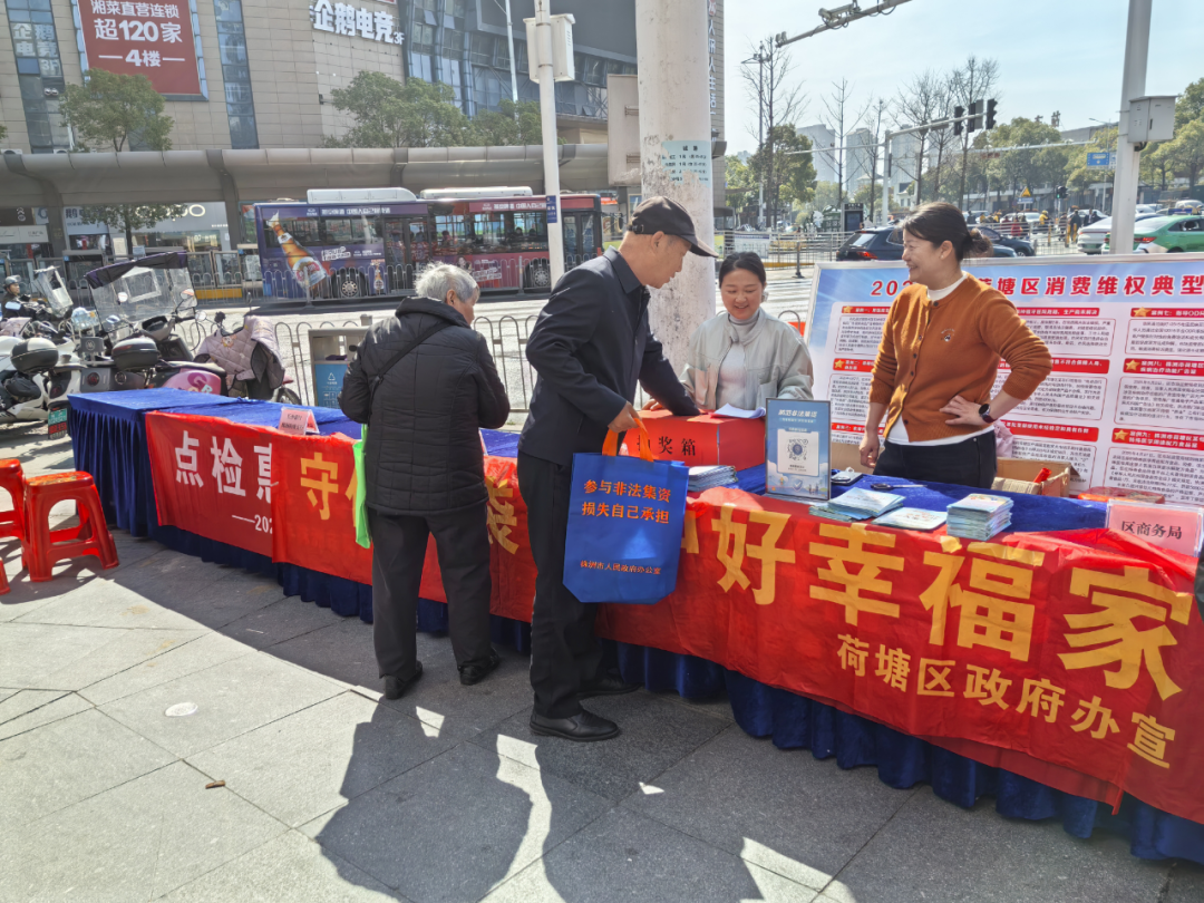 3月13日上午,株洲市荷塘区在“3・15国际消费者权益日”来临之际,在红旗广场商圈东都国际广场前坪开展“守住钱袋子・护好幸福家”防范非法集资主题宣传活动,切实守护辖区群众的财产安全与家庭幸福。活动由荷塘区市场监管局主办,区政府办、长沙银行株洲荷塘支行等10余家单位协办,以“面对面、零距离”的方式为群众送上金融安全知识,活动现场设置案例讲解台、知识问答区、咨询服务点,形式多样、内容务实,让防范非法集资知识真正入脑入心。
