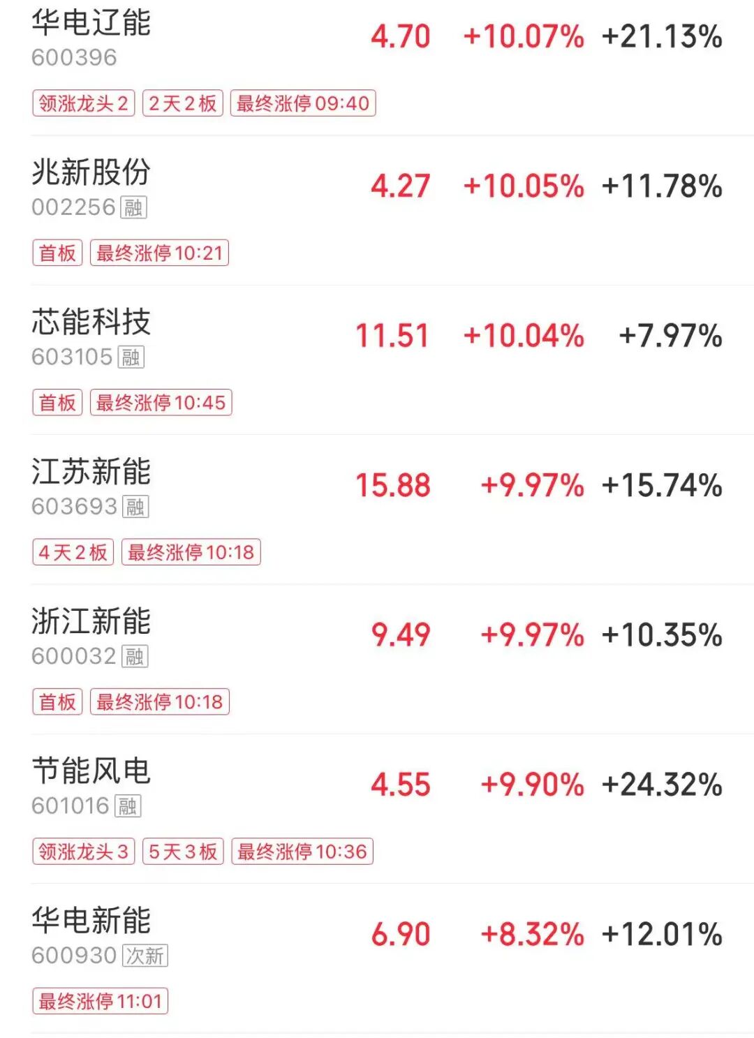 从板块来看,绿电概念反复活跃,华电辽能2连板,节能风电5天3板,华电辽能、芯能科技、江苏新能、浙江新能等多股涨停。
