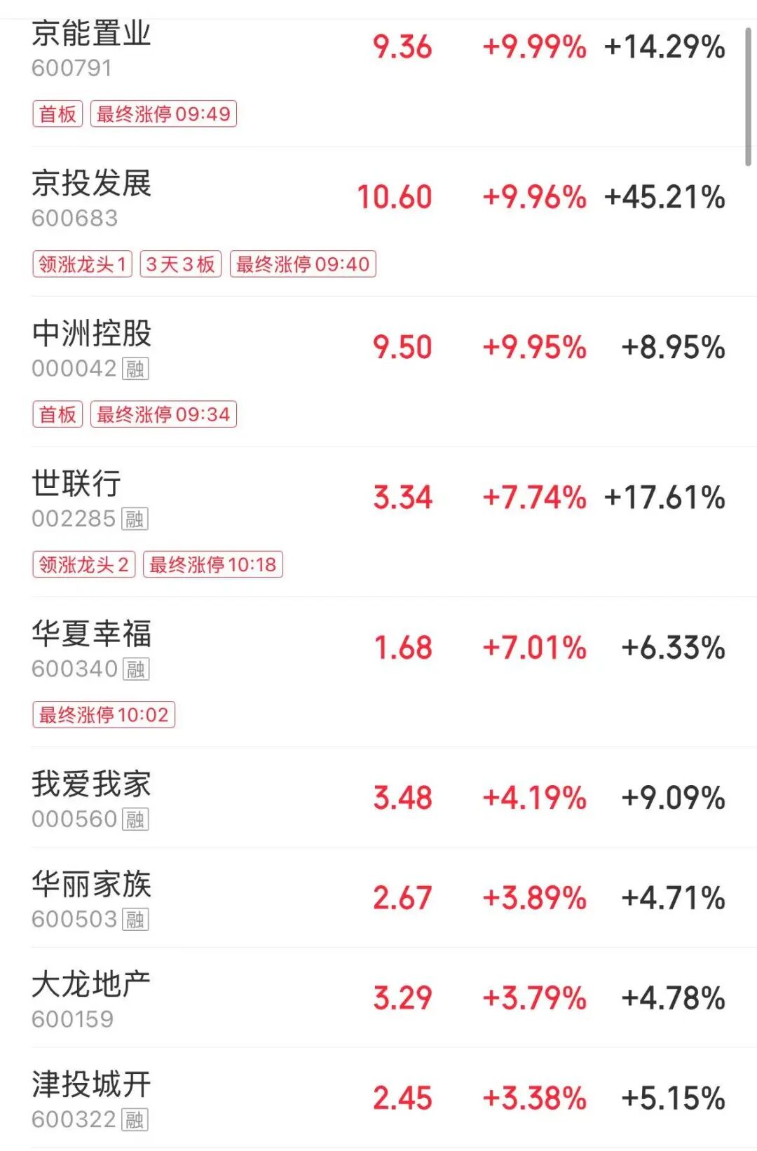 租赁同权、房地产开发、物业管理、商业物业经营等板块也纷纷跟涨,深华发A开盘一字涨停,连续第2日封板,京投发展同样开盘涨停,连续第3日涨停,年内累计大涨逾148%,中洲控股、京能置业等亦强势涨停。