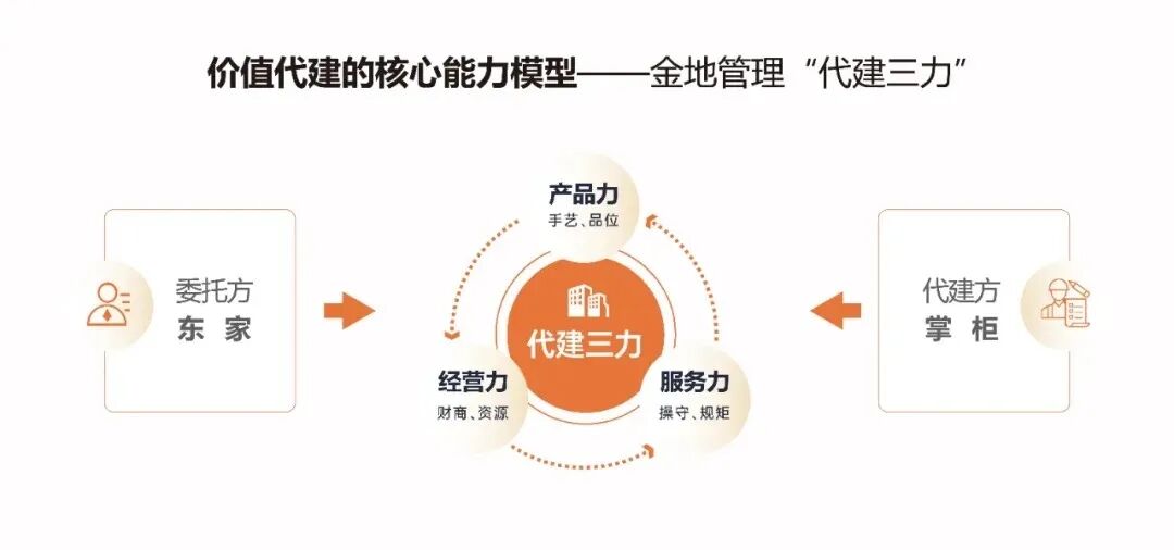 服务特色鲜明,金地管理拥有二十年代建经验、专属经营平台、混合所有制优势,坚持直营保障服务质量。其构建的“代建三力”模型(产品力、经营力、服务力)与“服务金三角” 体系,结合六大产品系列及“代建+”衍生能力,为委托方持续创造价值,获得众多客户的信赖,形成“两高一低”(客户满意度高、项目复订率高、合作解约率低)的显著优势,彰显出企业领先地位与竞争力。
