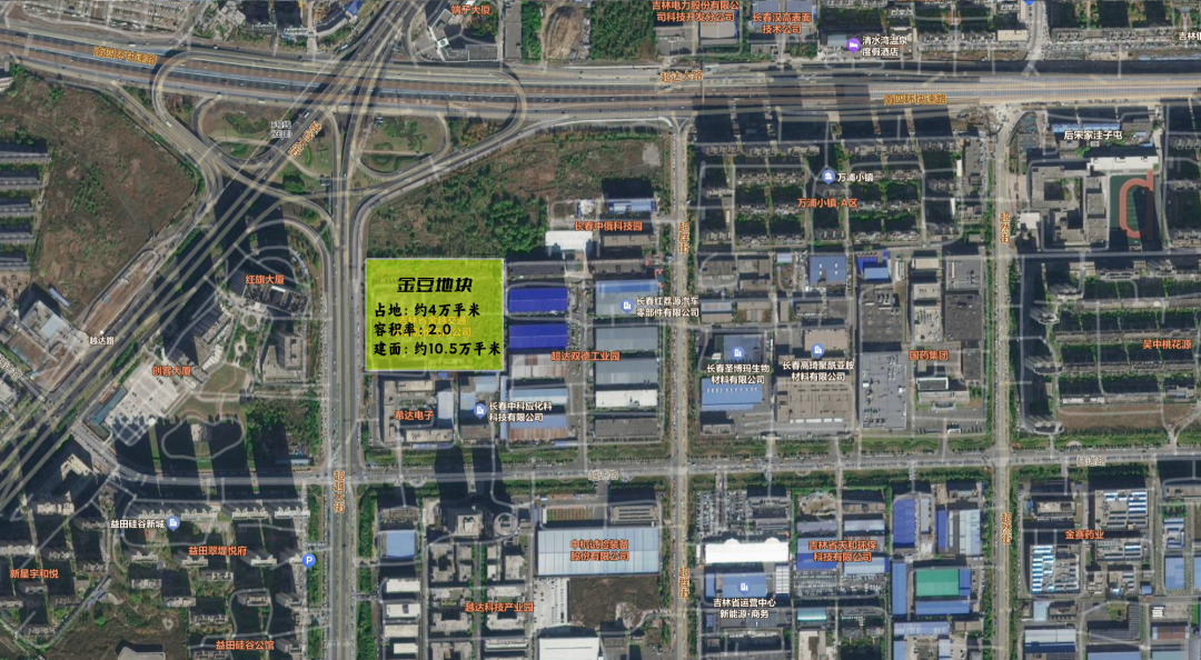 金豆地块项目位于长春高新南区,超越大街以东,项目总用地面积39524㎡,容积率2.0,规划总建筑面积为104738㎡。