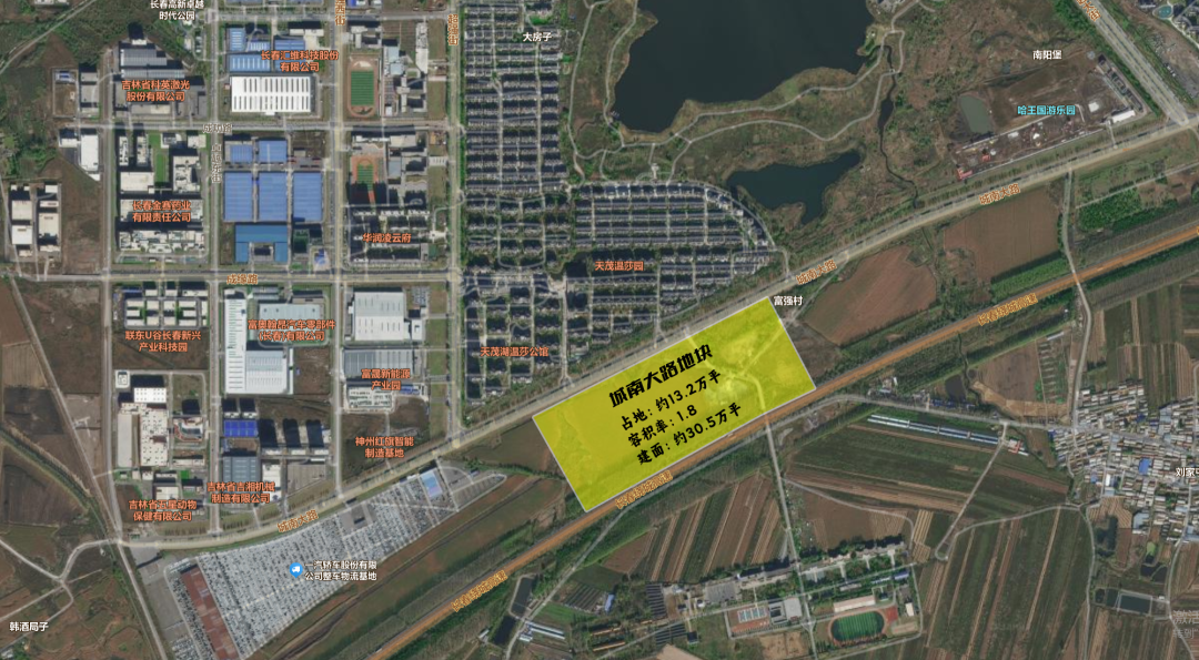 城南大路地块项目位于长春市高新南区,北至城南大路,南至绕城高速防护绿地,项目总用地面积132042.18㎡,容积率1.8,规划总建筑面积305080.92㎡。