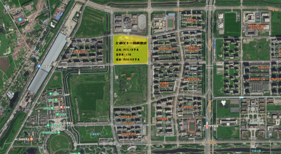 十一高南地块项目位于长春市北湖科技开发区,东至和安街、西至湖畔街、南至锦普路、北至尚文路。总用地面积131565㎡,容积率1.78,总建筑面积为309620㎡。