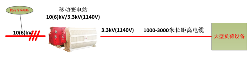 由于采煤机、掘进机这类负载直接启动瞬间有最高7-10倍的电流冲击,根据电压越低电流越大,所以供电距离越长线路损耗越大,实际线路末端的电压就越低负荷设备无法正常启动。为了实现“长距离供电”煤矿企业一般采取以下几种措施: