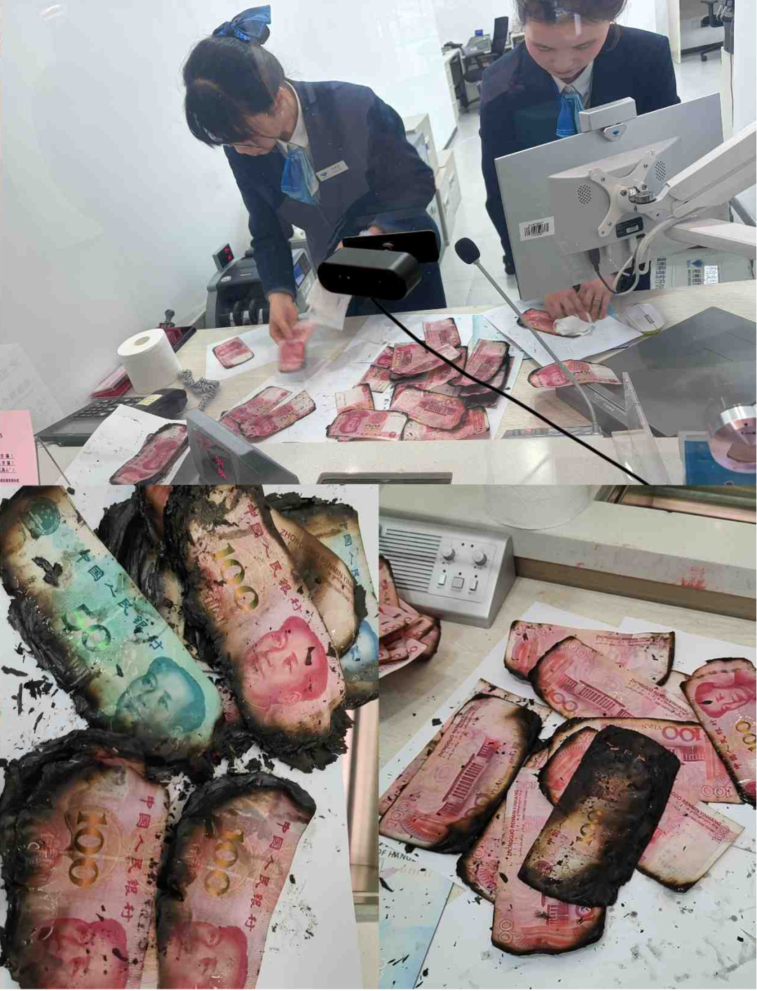 此前,温州科技支行接待了一位特殊的客户余先生,因家中突发火灾,一批人民币票面严重粘连、破损,成为了棘手的火烧币。看着焦急的余先生,支行工作人员第一时间上前接待,严格遵循残缺污损人民币兑换标准,对火烧币进行细致的鉴别、清点,全程耐心仔细、操作规范高效,顺利为余先生完成了残损币兑换。“本来以为这些钱都没用了,没想到银行能这么细心地处理,太感谢了!”余先生的连声称赞,是对我行现金服务最真切的肯定。