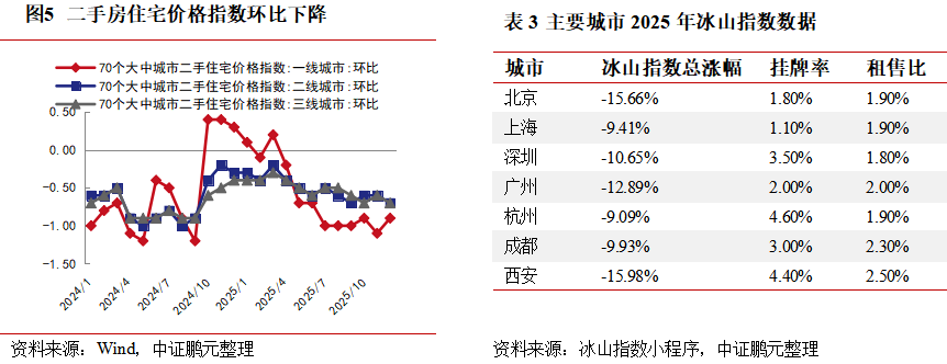 销售端:预计2026年商品房销售延续调整态势,同比降幅收窄至5%-8%,市场仍在筑底阶段;二手房延续“以价换量”,成交占比进一步提升,持续挤压新房销售空间。