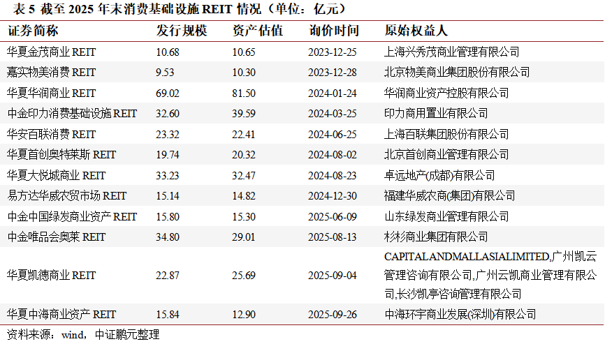 商业不动产REITs扩容,有望成为房企下一阶段资产盘活渠道。2025年末,证监会及沪深交易所集中发布30项REITs相关政策,其中商业不动产REITs试点落地、基础设施REITs扩容等放宽,有望推动房企加速REITs发行。2025年累计发行四宗消费基础设施REIT,募资规模合计89.32亿元,同比发行规模有所下滑;随着商业不动产REITs的放开,持有商业地产的主体将积极跟进,截至2026年1月末,首批3只商业不动产公募REITs获上交所受理。