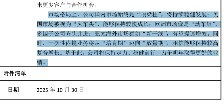 报告期内,公司通过深化海外本地化营销、加快新品上市上量、降本增效等 举措,有效对冲了集采和关税带来的短期压力,充分体现了公司在复杂环境下保持稳定增长的能力。