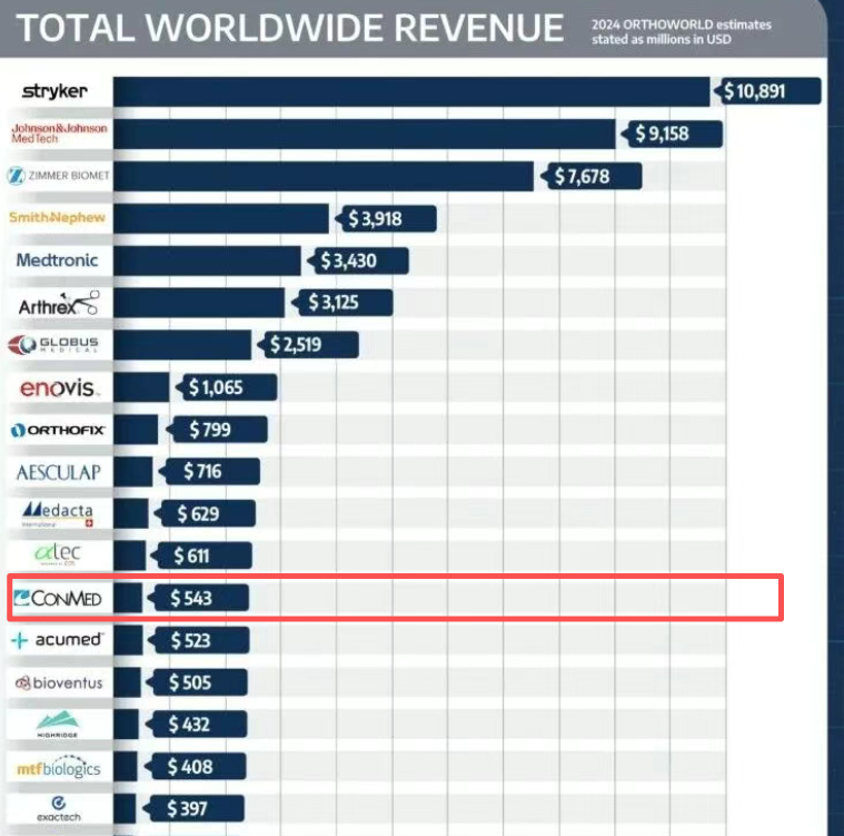 此次交易的对手CONMED(康美)是全球知名的骨科巨头,曾位居全球全球十大骨科企业的第九位。