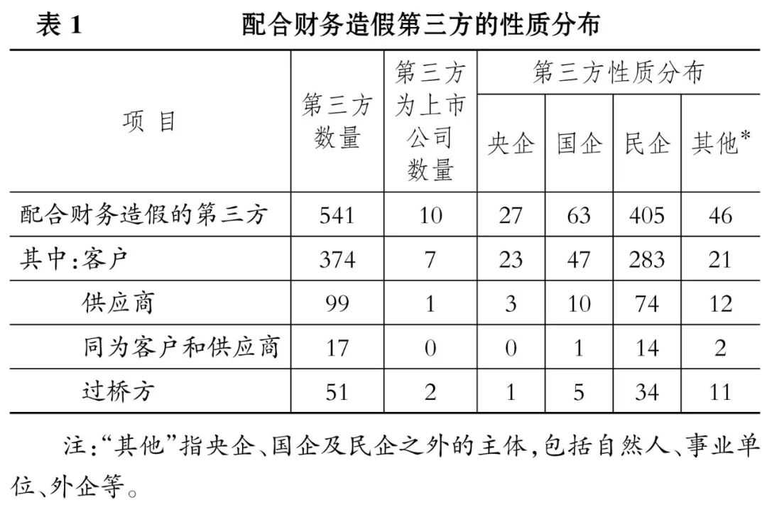 本文的分析表明:第三方配合上市公司进行财务造假的现象十分严重。配合财务造假的第三方既有客户,也有供应商,甚至还有金融机构;既有民营企业,也有国有企业,甚至还有上市公司(或其下属公司)④;既有空壳公司,也有真实公司,甚至还有实力雄厚的公司。