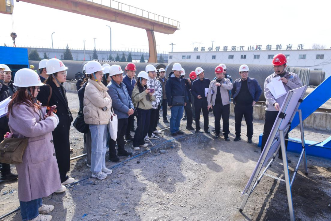 活动现场,山西分公司技术总工王宾系统介绍了PCCP智慧工厂的改造进展、实时数据监控系统和质量追溯体系,并首次对外展示了预制检查井的工厂化生产流程。随后,嘉宾们依次走进承插口制作、钢筒焊接、管芯浇筑、预应力缠丝、砂浆辊射、成品防腐等工序现场,实地了解关键生产工艺。