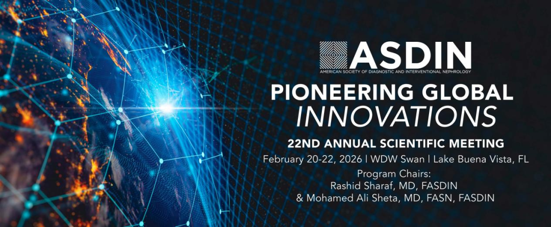 2月20日至22日,第22届美国诊断与介入肾脏病学会年会(ASDIN 2026)在美国佛罗里达州召开。作为血液透析血管通路领域的顶级国际学术盛会,本届大会汇聚了来自全球的肾脏病学、血管介入及透析医学专家,围绕最新研究成果与临床实践进行深入探讨。