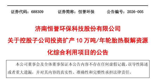 3月25日,山东合晟环保科技有限公司公布10万吨/年轮胎热裂解资源化综合利用扩产项目。