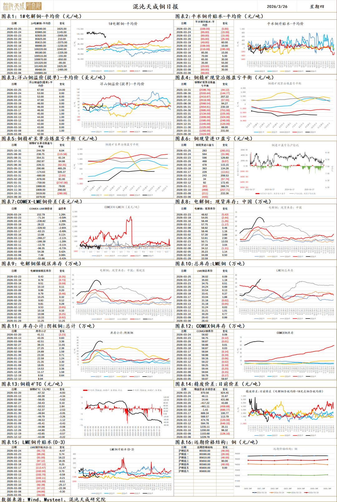 2.【西部矿业2025年生产冶炼铜334,194吨,同比增长26.70%】SHMET03月25日讯,西部矿业披露2025年年度报告,据报告显示,公司全年生产矿产铜167,504金吨,其中玉龙铜业生产矿产铜152,116金吨,矿产钼4,051金吨,同比增长1.05%;矿产锌128,795金吨,同比增长20.28%;矿产铅62,997金吨,同比增长16.73%;铁精粉1,405,292吨,同比增长2.06%;精矿含金233.57千克,同比增长23.58%。冶炼板块优化升级冶炼系统,全年生产冶炼铜334,194吨,同比增长26.70%,其中青海铜业生产200,208吨,西部铜材生产131,129吨;冶炼铅154,130吨,冶炼锌152,059吨;盐湖化工(850102)板块深耕资源开发,生产高纯氢氧化镁原粉146,503吨、高纯氧化镁52,672吨。