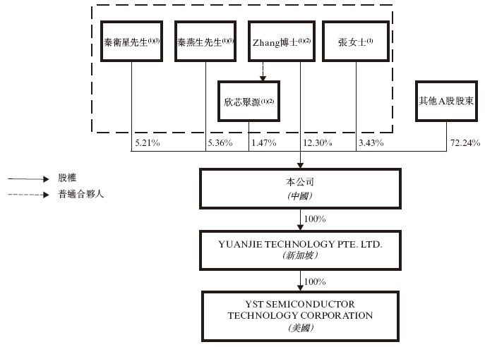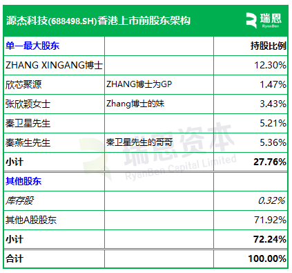 招股书显示,源杰科技在香港上市前的股东架构中,