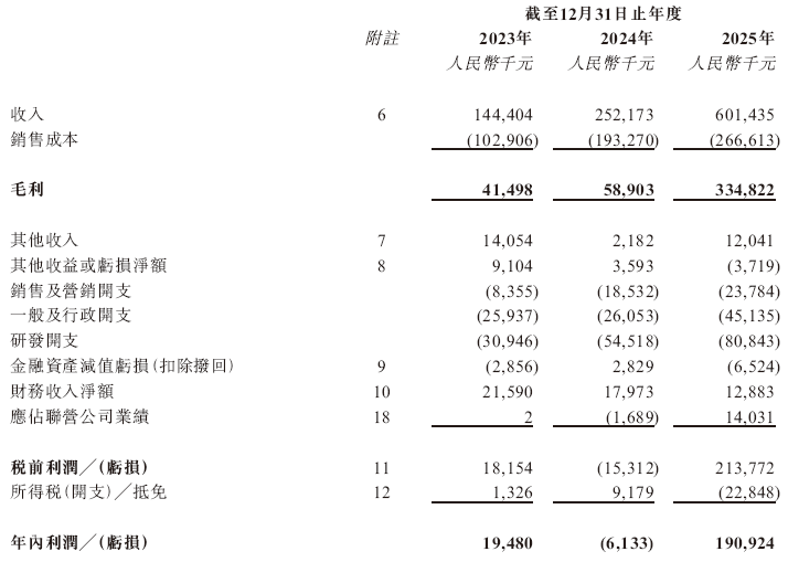 招股书显示,在过去的2023年、2024年和2025年,源杰科技的营业收入分别为人民币1.44亿、2.52亿和6.01亿元,相应的净利润分别为人民币0.19亿、-613.3万和 1.91亿元。