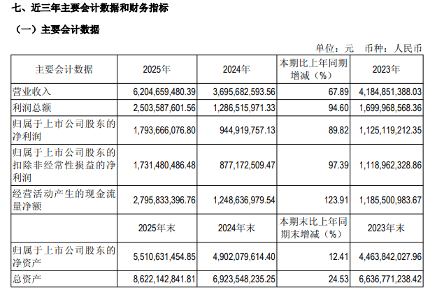 3月26日晚间,吉比特年度报告新鲜出炉,2025年公司实现营收62.05亿元,同比增长67.89%;净利润17.94亿元,同比增长89.82%;经营性净现金流27.96亿元,同比增长123.91%。