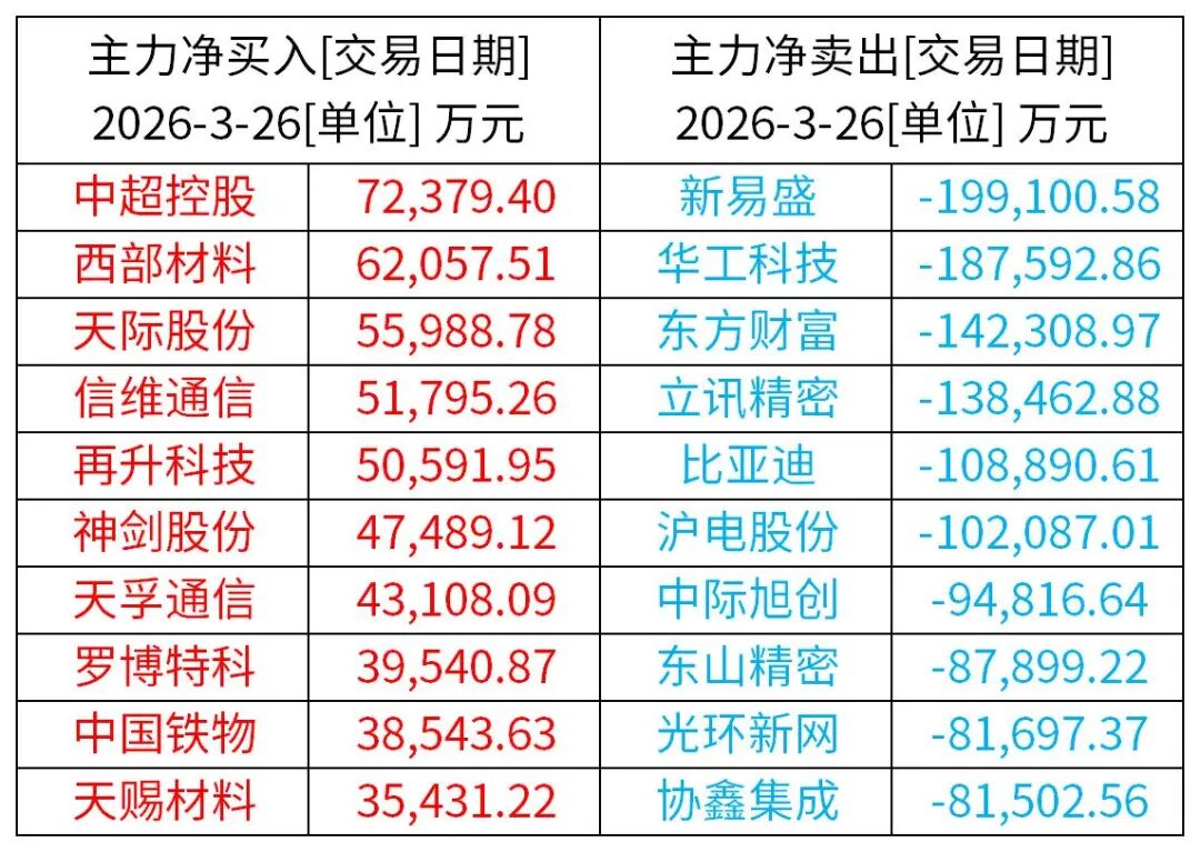 前一交易日主力资金动向