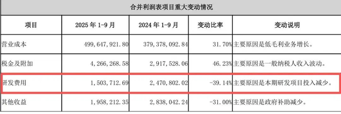 然而,与其战略布局形成鲜明对比的是,博士眼镜在研发投入方面长期薄弱。2020 年至 2022 年,博士眼镜研发费用始终为零,2023年虽增至466.94万元,也仅占营收的0.40%;2024年前三季度研发费用为247.08万元,占比进一步降至0.27%。根据2025年第三季度财报,其研发投入同比仍呈下降趋势。