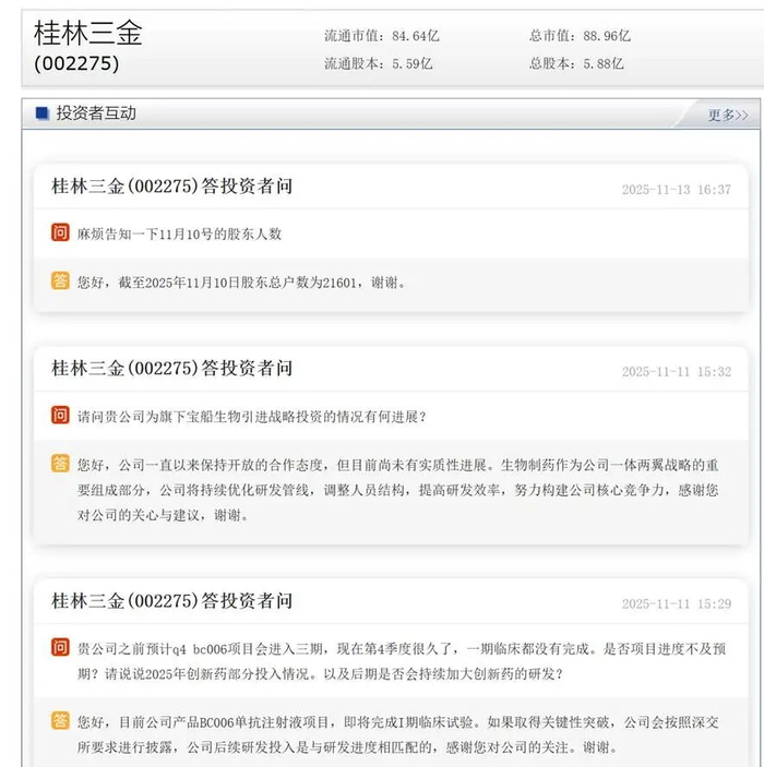 白帆生物受制于行业竞争激烈、订单落地周期拉长等因素,仍处于持续亏损阶段,未能实现盈利;而宝船生物尚无产品上市销售,核心在研药物仍处早期临床阶段,研发周期长且不确定性高。持续的研发投入导致其资产负债率超过70%,运营依赖母公司担保支持。整体来看,桂林三金在生物制药领域仍处于高投入、长周期的探索阶段,实现规模化发展与盈利尚需时间。
