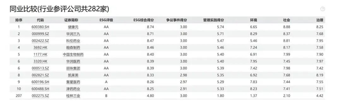 在ESG方面,根据万得评级系统,桂林三金评级为B,位于行业下游水平。