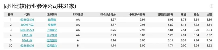 根据万得评级,拉芳家化评级为B,位于行业下游水平。