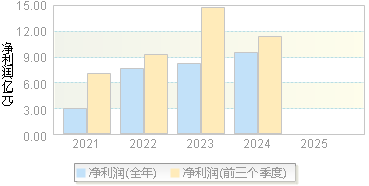 | 净利润增长率(%) | -1.35 | 6.31 | 6.99 | 5.15 | 21.88 |