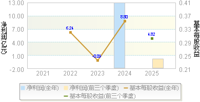中国铀业2025年三季实现基本每股收益0.2400元,比上年同期增长%。
