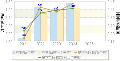 | 基本每股收益 | 0.8700 | 0.4100 | 1.5500 | 1.0900 | 0.6700 |