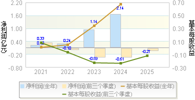 | 基本每股收益 | 0.1900 | 0.2400 | 0.2300 | 0.2500 | -0.2700 |