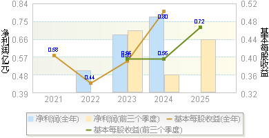 | 基本每股收益 | 1.3000 | 0.8600 | 0.4400 | 1.4400 | 0.9500 |