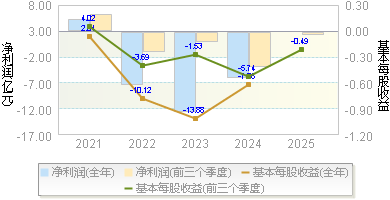 | 基本每股收益 | -0.2500 | -0.2200 | -0.1500 | -1.4400 | -0.9100 |