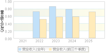 常辅股份2025年三季实现营业收入0.72亿元,比上年同期增长22.03%。
