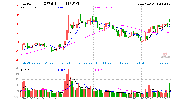 星华新材收于22.920元,涨幅12.13%,成交金额2.5479亿元,换手率26.99%。