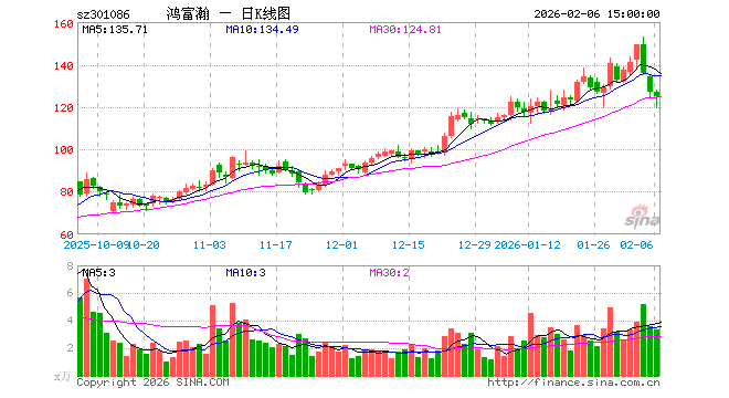 鸿富瀚收于42.550元,涨幅14.14%,成交金额1.5183亿元,换手率11.54%。