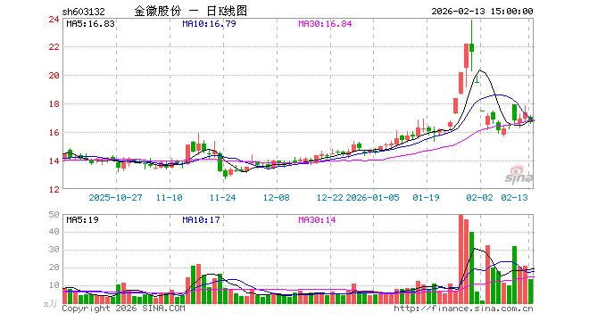 金徽股份收于14.430元,涨幅3%,成交金额1.1668亿元,换手率5.09%。