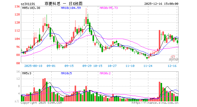 菲菱科思收于98.160元,跌幅1.35%,成交金额2.9092亿元,换手率11.48%。