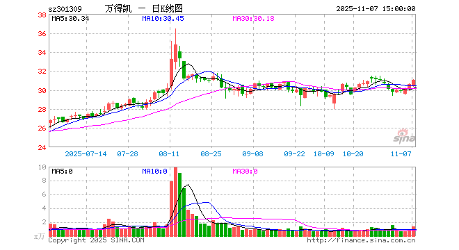 9月30日,万得凯开盘涨3.26%,报23.41元。