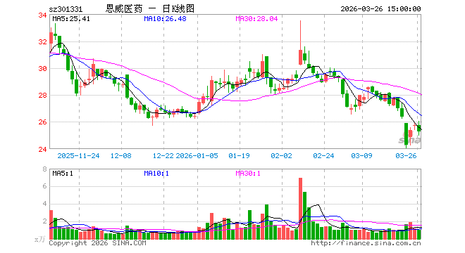 10月8日,恩威医药开盘涨19.18%,报32.5元。