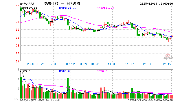 凌玮科技收于29.710元,跌幅0.47%,成交金额0.3515亿元,换手率4.37%。